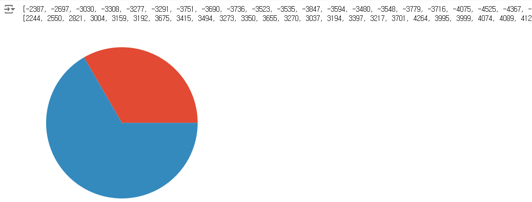 ์ค์ ๋ก๋ plt.pie() ํจ์์ ์ธ์๋ก ๋จ์ฑ๊ณผ ์ฌ์ฑ์ ๋ฐ์ดํฐ๋ฅผ ์ ๋ฌํ์ฌ ๊ฐ๊ฐ์ ๋น์จ์ ํ์ํด์ผํ๋ค.