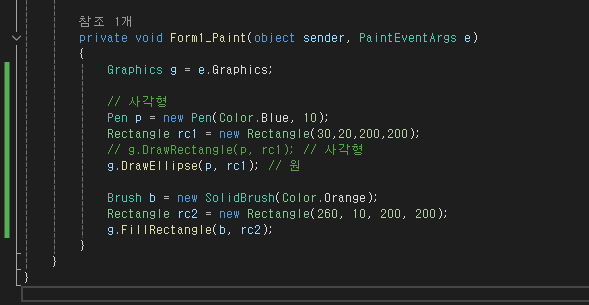 Form1_Paint - Paint ์ด๋ฒคํธ ์ฒ๋ฆฌ๊ธฐ ๋ด๋ถ์์ ๊ทธ๋ํฝ ๊ฐ์ฒด ์์ฑ: Form1_Paint ๋ฉ์๋ ๋ด๋ถ์์ Graphics ๊ฐ์ฒด๋ฅผ ์์ฑ