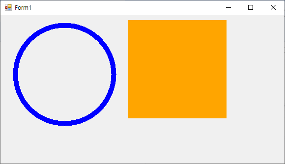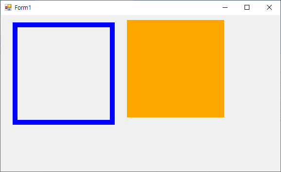 SolidBrush b = new SolidBrush(Color.Blue); // ๋ธ๋ฃจ ์์์ ๋จ์ ๋ธ๋ฌ์ ์์ฑ g.FillRectangle(b, 10, 10, 100, 100); // ์์ฑํ ๋จ์ ๋ธ๋ฌ์๋ฅผ ์ฌ์ฉํ์ฌ ์ฌ๊ฐํ ์ฑ์ฐ๊ธฐ g.FillRectangle(Brushes.Red, 130, 10, 100, 100); - ๋ธ๋ฌ์ ๊ฐ์ฒด๋ฅผ ์์ฑํ์ฌ ์ฌ์ฉํ ์๋ ์๊ณ , ์์ฑ์์๊ฒ ์ ์ ์ผ๋ก ์ ๊ทผํ์ฌ ์ฌ์ฉํ ์๋์๋ค.