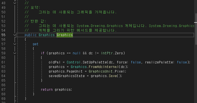 private void Form1_Paint(object sender, PaintEventArgs e) { Graphics g = e.Graphics; } - ๋ค๋ฅธ ๋ฉ์๋์์ ๊ทธ๋ฆผ ๊ทธ๋ฆฌ๊ธฐ: ๋ค๋ฅธ ๋ฉ์๋์์ ๊ทธ๋ฆผ์ ๊ทธ๋ ค์ผ ํ ๊ฒฝ์ฐ CreateGraphics() ๋ฉ์๋๋ฅผ ์ฌ์ฉํ์ฌ ๊ทธ๋ํฝ ๊ฐ์ฒด๋ฅผ ์์ฑ