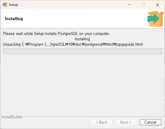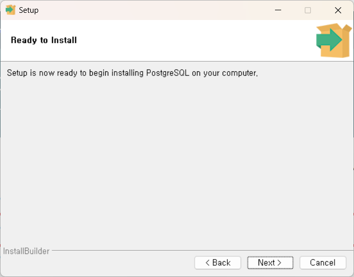 ์ค์ ์ด ์๋ฃ๋๋ฉด 'Next'๋ฅผ ํด๋ฆญํ์ฌ ์ค์น๋ฅผ ์์ํฉ๋๋ค. ์ค์น๊ฐ ์งํ๋๋ ๋์ ์ ์ ๊ธฐ๋ค๋ฆฌ๋ฉด, PostgreSQL์ด ์ฑ๊ณต์ ์ผ๋ก ์ค์น๋ฉ๋๋ค.