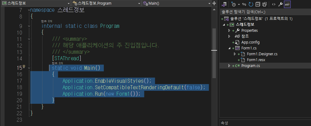 μ€λ λλ₯Ό μμ±νμ§μμλ κΈ°λ³Έμ μΌλ‘ λμνλ€. Program.cs κ°λ©΄ Main()λ©μλ μμ²΄κ° λ©μΈμ€λ λμ΄λ€.
