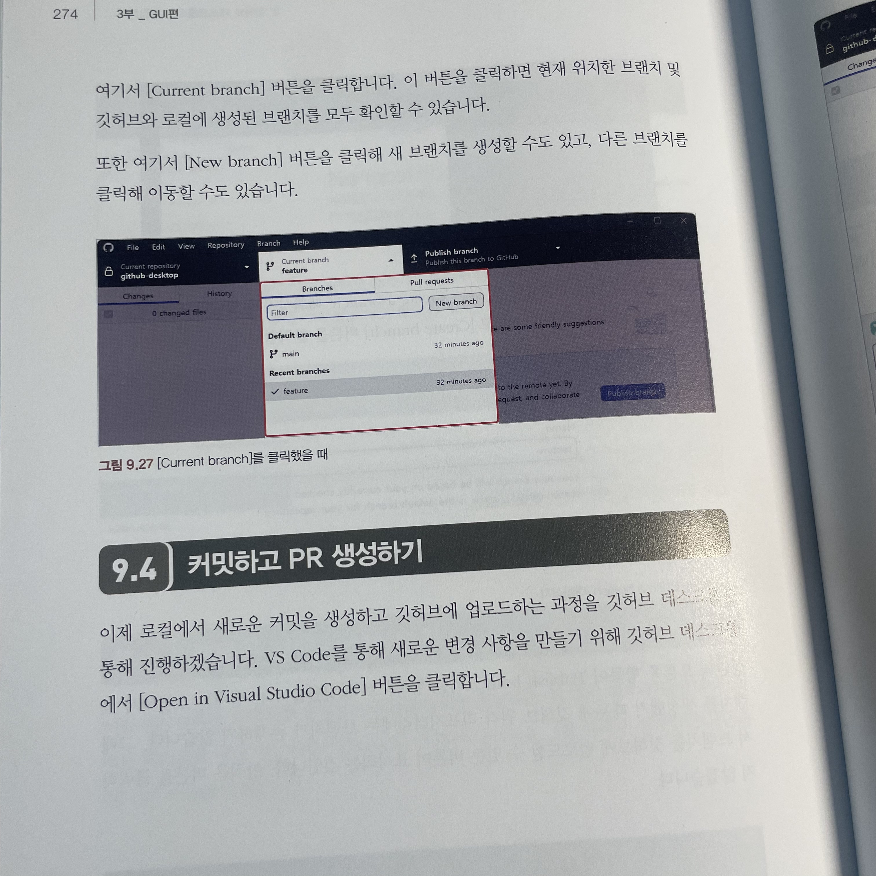 ๋ ฅ ์์ด๋ ํด๋ฆญ ๋ช ๋ฒ์ผ๋ก ๋ธ๋์น๋ฅผ ์์ฑํ๊ฑฐ๋ ๋ณ๊ฒฝ ์ฌํญ์ ์ปค๋ฐํ๊ณ , PR(Pull Request)์ ์ฝ๊ฒ ์์ฑํ ์ ์์ต๋๋ค. ์๋ ์ด๋ฏธ์ง์ฒ๋ผ GUI ์์์ ํ์ฌ ๋ธ๋์น ์ํ๋ฅผ ๋ฐ๋ก ํ์ธํ๊ณ , ์ ๋ธ๋์น ์์ฑ๋ ๊ฐ๋จํ ๊ฐ๋ฅํฉ๋๋ค.