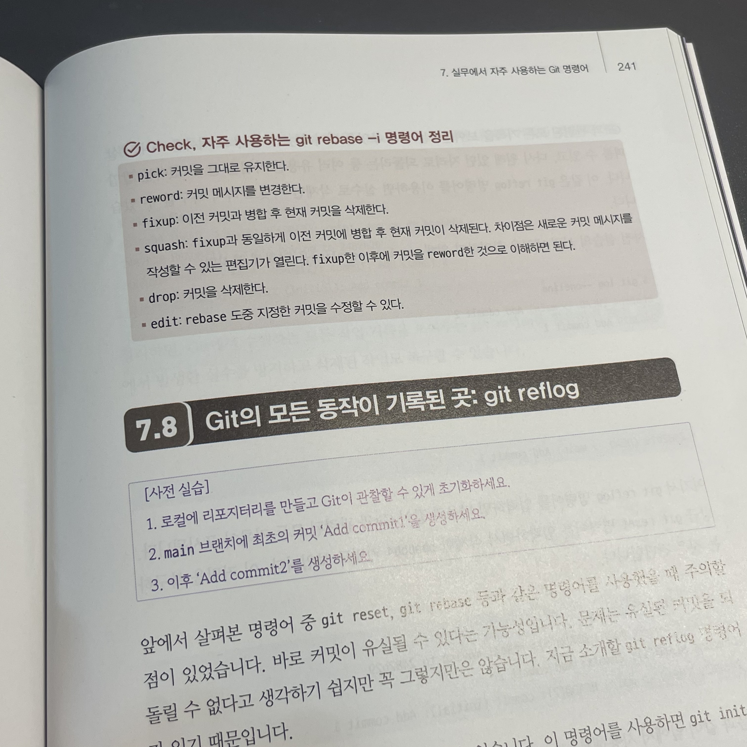 ๋ น์ด๋ฅผ ์๊ฐํฉ๋๋ค. ํนํ git rebase์ git reflog๋ ์ค์๋ก ๋ฐ์ํ ๋ฌธ์ ๋ฅผ ํด๊ฒฐํ๊ฑฐ๋, ์ปค๋ฐ ๊ธฐ๋ก์ ์ ๋ฆฌํ ๋ ๋งค์ฐ ์ ์ฉํ ๋ช