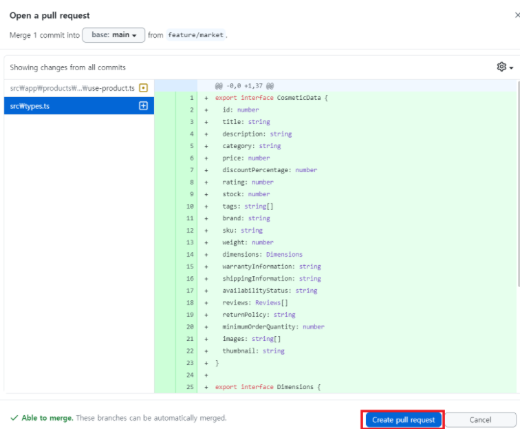 4. PR์ ์์ฑํ๊ณ , Merge๋ฅผ ์๋ฃํ์ฌ ๋ณํฉ ์์