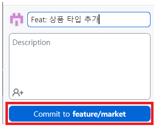 ํ๋ ์ปค๋ฐ ๋ฉ์์ง๋ฅผ ์์ฑํ ๋ค Commit to feature/wisdom ๋ฒํผ์ ํด๋ฆญํ๋ค.