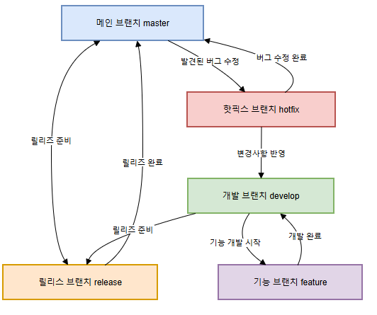 2. Git Flow ๋ธ๋์น ์ ๋ต ํ๋ฆ๋