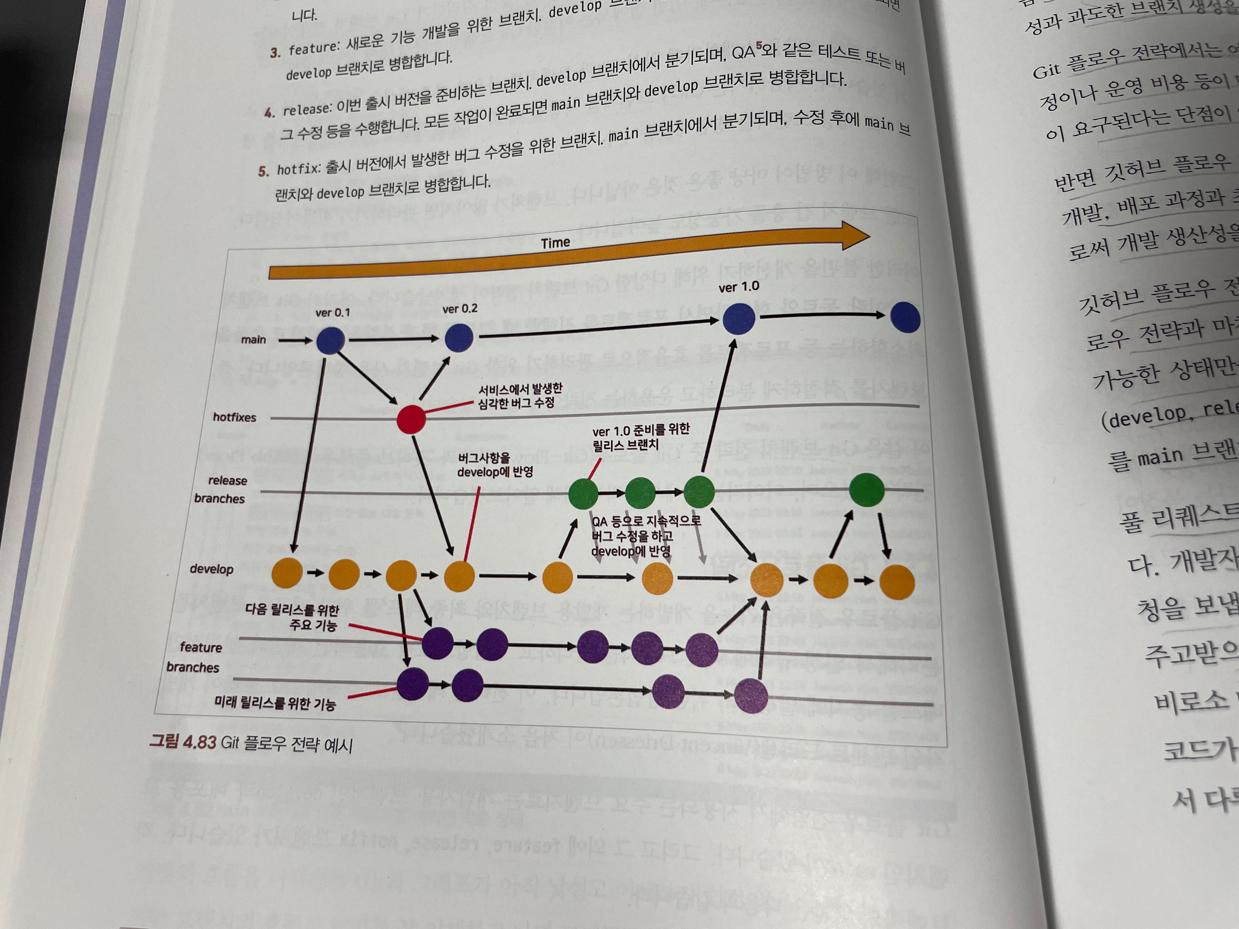 ์ฌ์ค Git Flow ๋ธ๋์น ์ ๋ต์ ๋ํด ๊ณ ๋ฏผํด ๋ณธ์ ์ ์์๋๋ฐ, ์ต๊ทผ์ ์ฝ์ " ๊ทธ๋ฆผ๊ณผ ์ค์ต์ผ๋ก ๋ฐฐ์ฐ๋ ๊น& ๊นํ๋ธ ์ ๋ฌธ " ์ฑ ์ ํตํด ๋์ฑ ๋ช ํํ๊ฒ ์ดํดํ ์ ์์์ต๋๋ค. ํด๋น ๋ด์ฉ์ ์ฑ 4์ฅ ๋ณต์กํ ๋ฌธ์ ๋ฅผ ํด๊ฒฐํ๋ ๋ธ๋์น ์ฅ์ 109 ํ์ด์ง์ ์์ธํ ๋์์์ต๋๋ค.