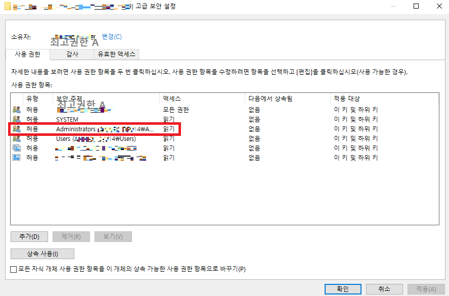 Administrators ์๊ฒ ๋ชจ๋ ๊ถํ์ ์ค๋, ์์ ์๊ฐ A ์ผ ๊ฒฝ์ฐ์๋ ์์ ํ ์ ์ด๊ถ์ด ์๋....