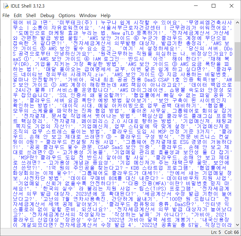 print('{}๋ฒ์งธ ๊ฒ์๊ธ์ ์ ๋ชฉ : {}'.format(index, element.text))