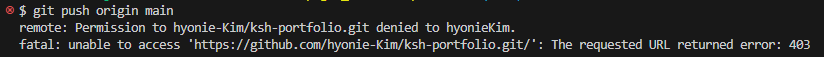 - ๊นํ๋ธ์์ hyonieKim ๊ณ์ ์ hyonie-Kim/ksh-portfolio ์ ์ฅ์์ push ๊ถํ์ด ์์