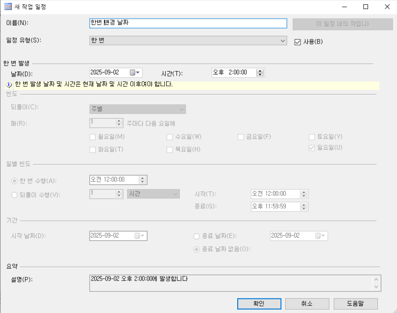 - μ΄λ¦κ³Ό μΌμ μ ν(μ: λ§€μΌ, νΉμ μκ°)μ μ€μ ν λ€ [νμΈ]μ ν΄λ¦ν©λλ€.